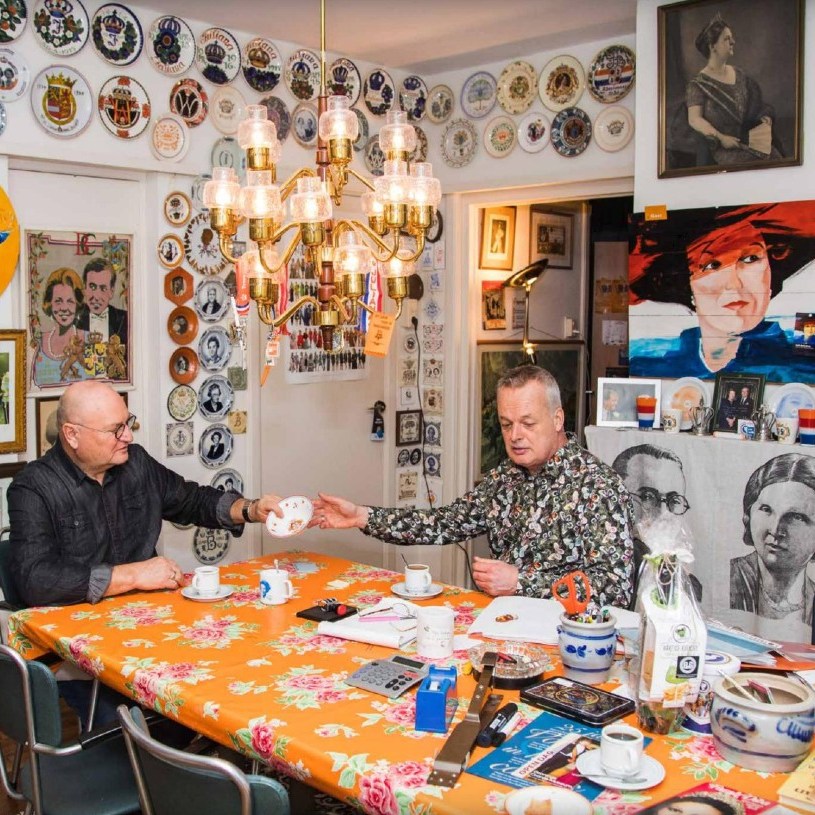 Toen mijn oom en tante hun winkel ophieven kreeg ik het portret van Bernhard en mijn neefje kreeg Juliana. Het begin van mijn collectie. De verzamelwoede sloeg over op mijn vriend en samen spaarden we een benedenverdieping aan Oranje-parafernalia bij elkaar.